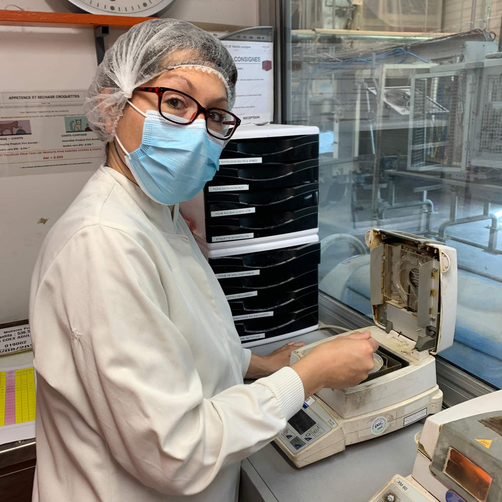 C'est Audrey, passionnée d'animaux et diplômée en biologie, qui formule les recettes. C’est dans son laboratoire, au sein de l’usine, qu'elle apporte le plus grand soin dans la confection de nos recettes, pour qu’elles soient adaptées et équilibrées.